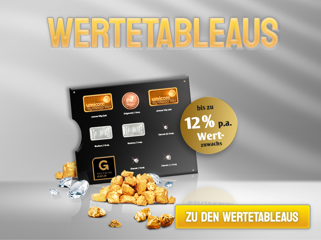 Hier finden Sie umfassende Informationen zu unserem Wertetableau mit Gold, Silber, Platin, Rhodium und Diamanten in einem Produkt. Sie erwerben zum aktuellen Tageskurs, als Geschenk oder Anlage, so wie es Ihnen beliebt